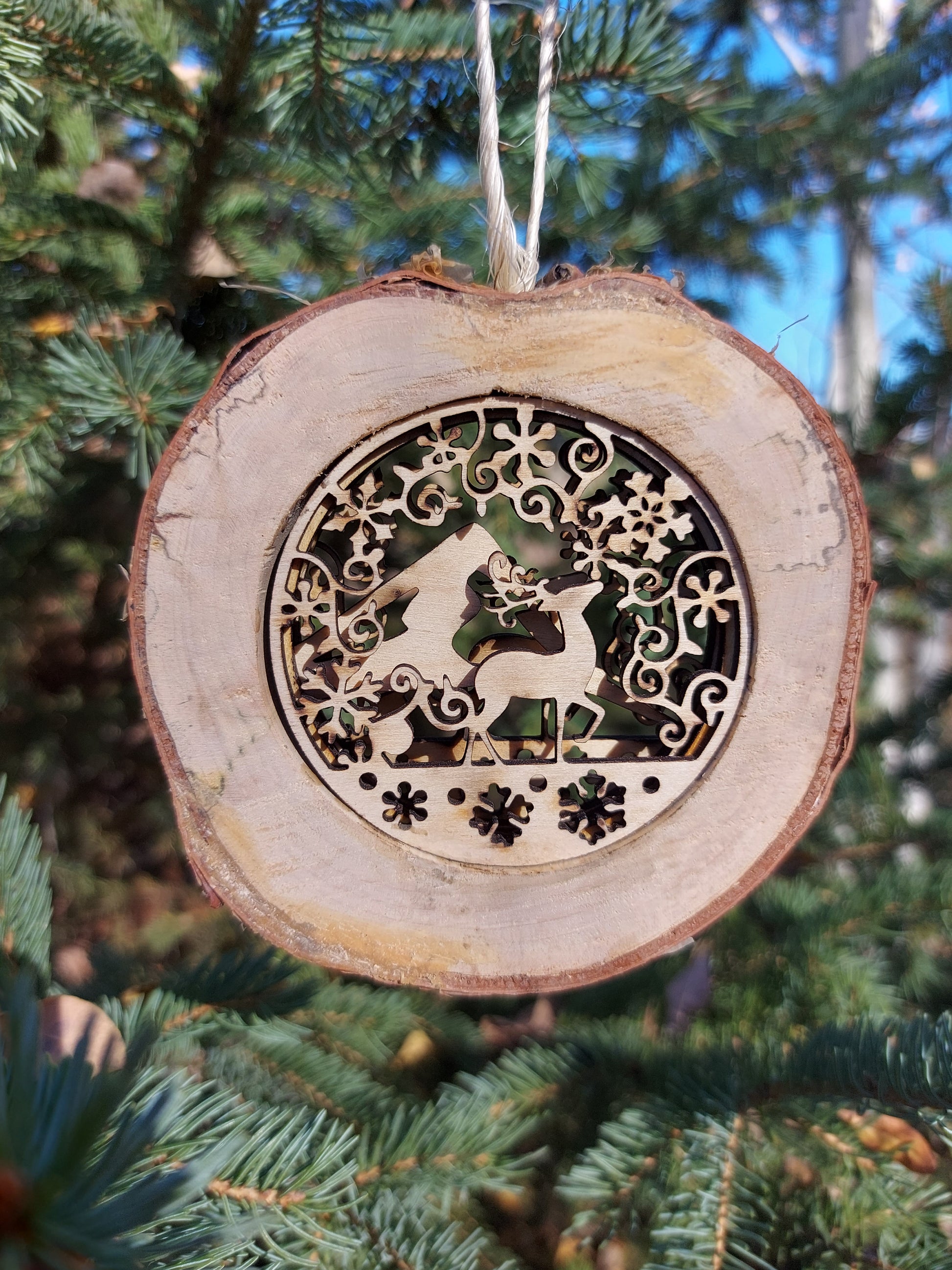 Amazing, beautiful, and unique Christmas tree ornaments. Made from locally sourced birch or pine with baltic birch image inserts. Multiple styles.